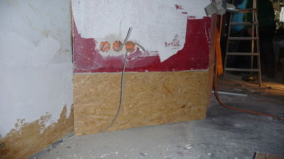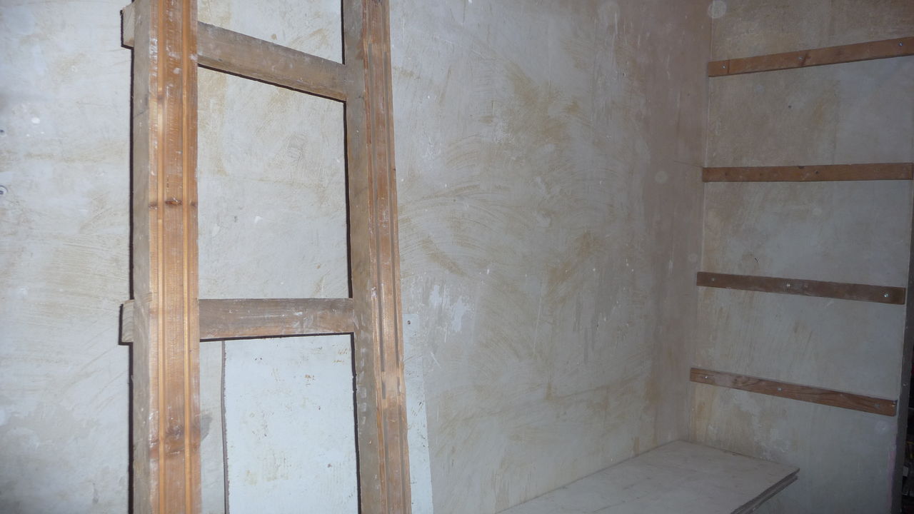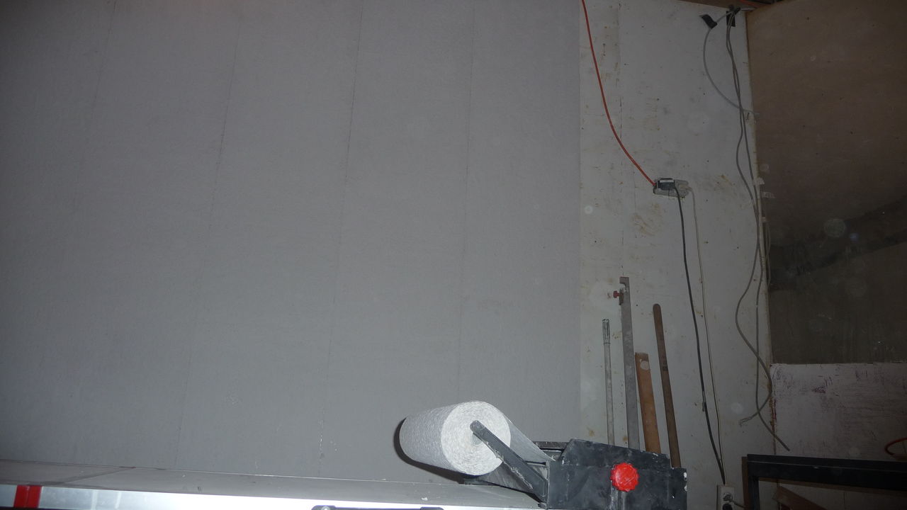 An der neu verputzten Wand soll nun ein Regal entstehen, das zunächst Werkzeuge, später vielleicht auch Hardware aufnehmen soll.
