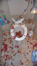 Am gestrigen Freitag haben Unbekannte das Klo verwüstet. Eine der heute anwesenden vier Personen musste darauf für längere Zeit mit der Säuberung beauftragt werden und stand für sinnvollere Arbeiten nicht zur Verfügung.