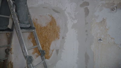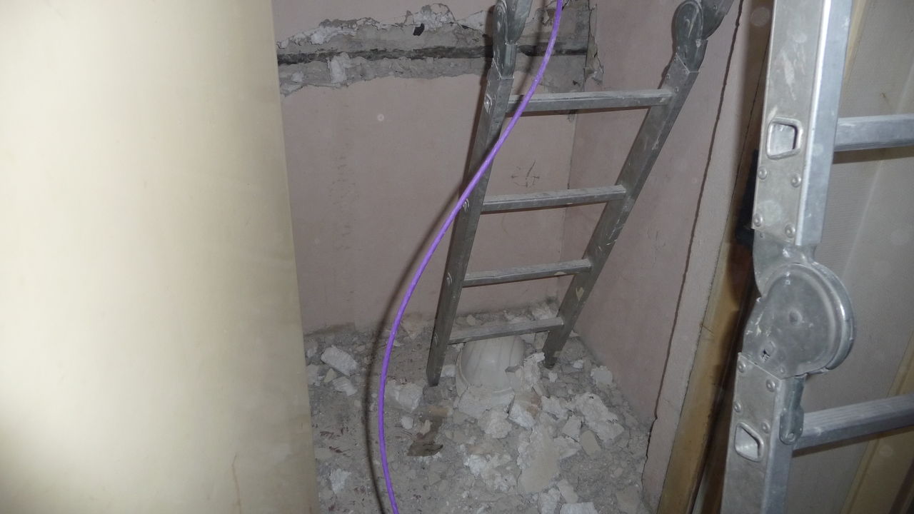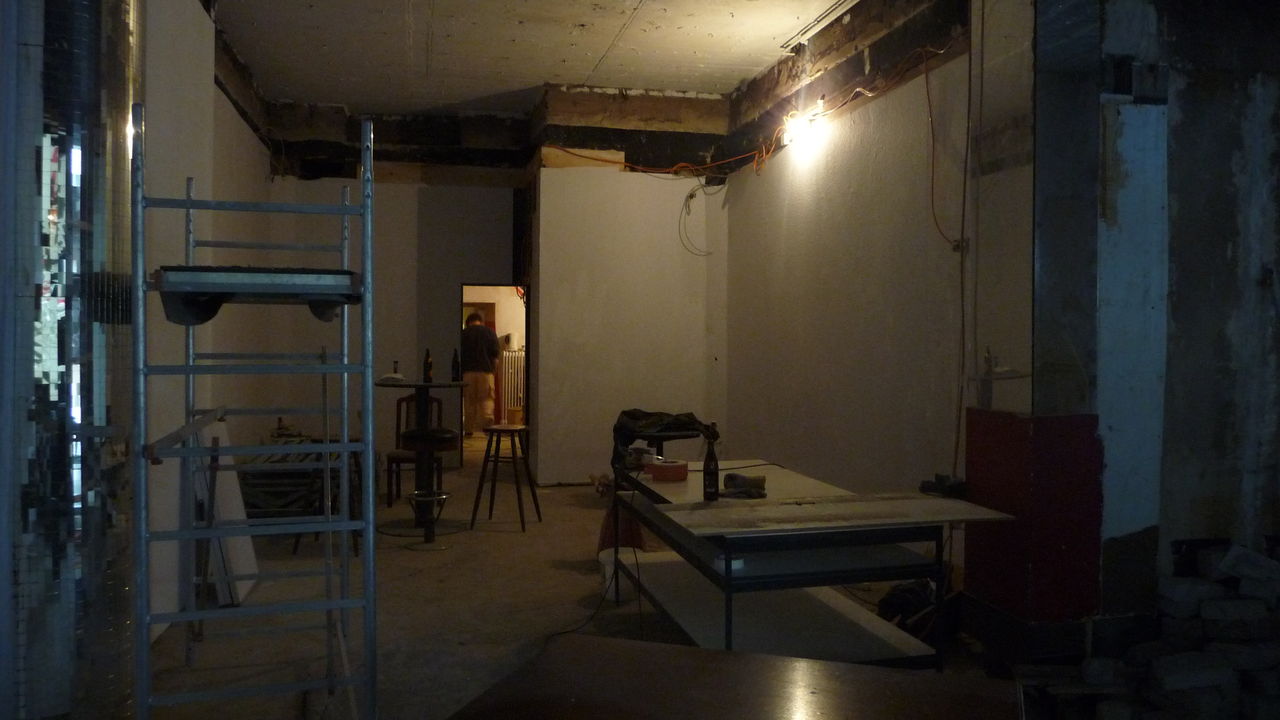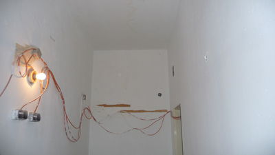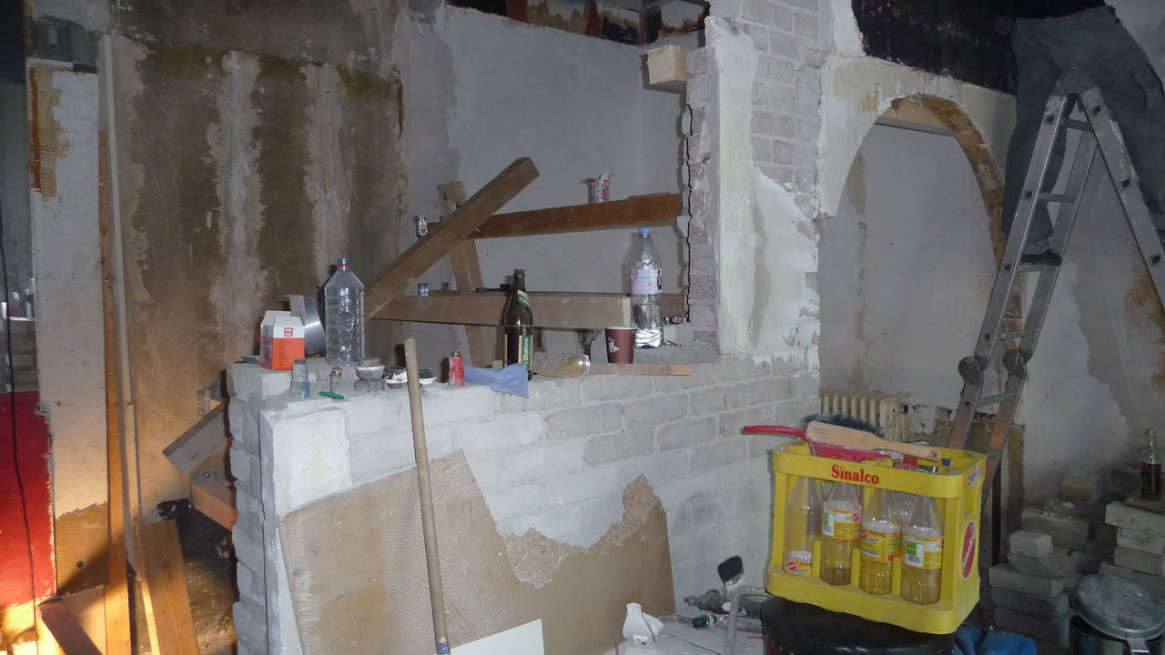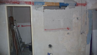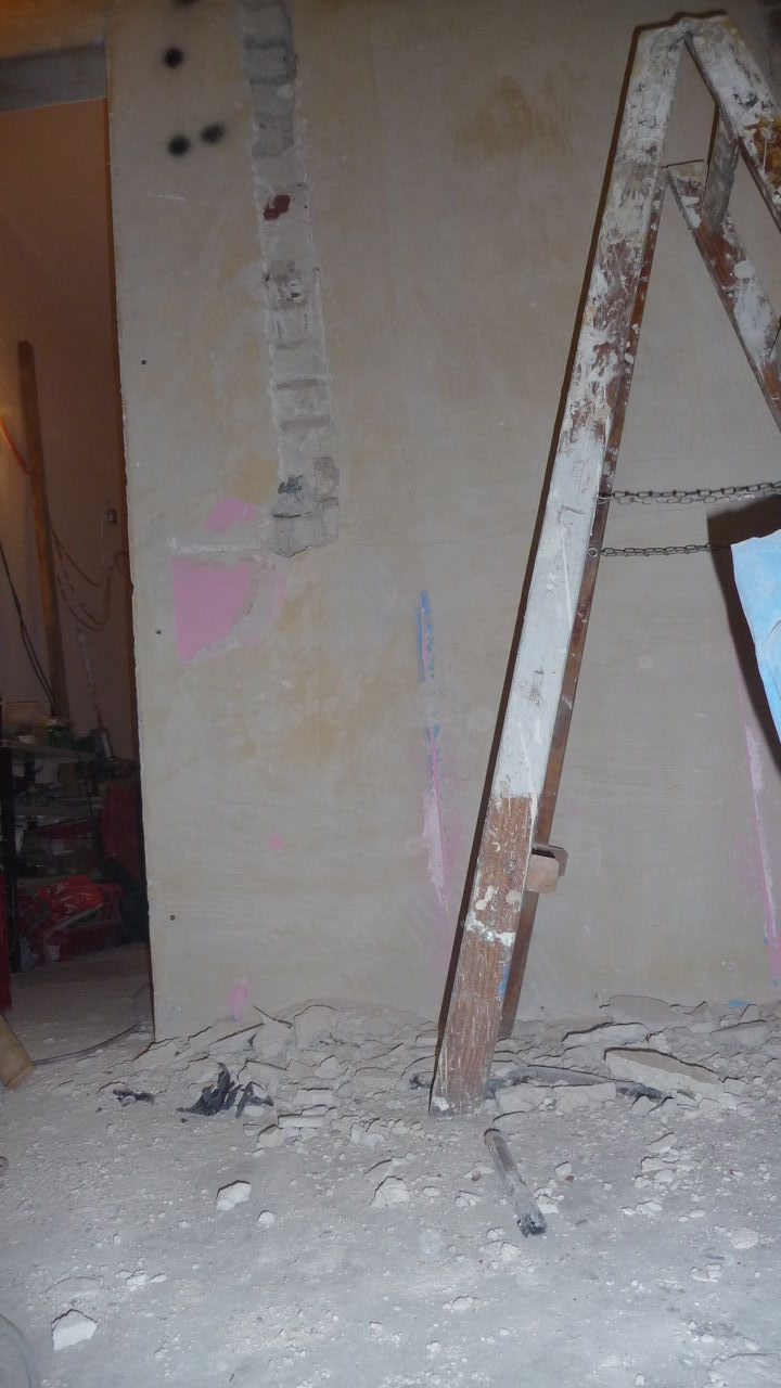 Weiterführung der Arbeiten von gestern. Die Decke im Lager ist nun teilweise gefixt (was unter starker Dreckentwicklung am Boden geschah). Auch das ehemalige Lüftungsloch in der Küche ist zu (allerdings schon etwas länger).