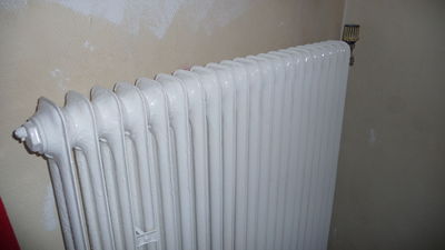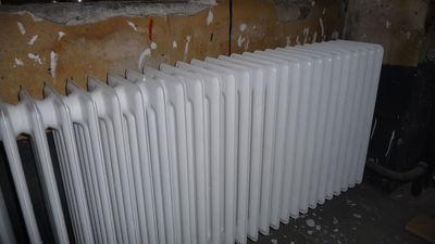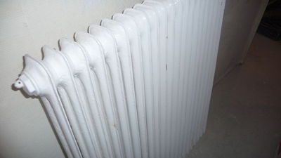 Die Heizkörper werden ein zweites Mal lackiert, da der Lack sich wie erwartet nicht gleichmäßig verteilt hat.