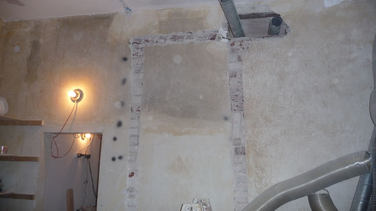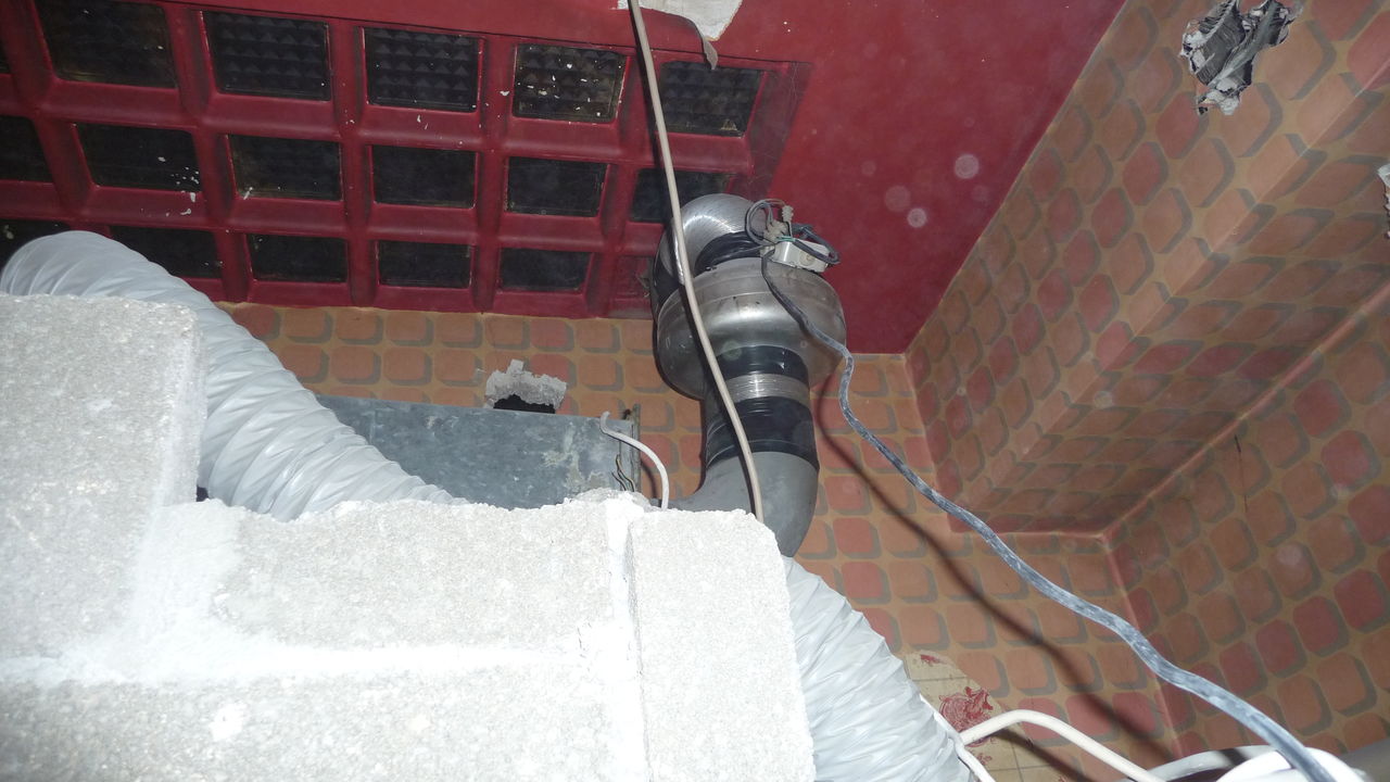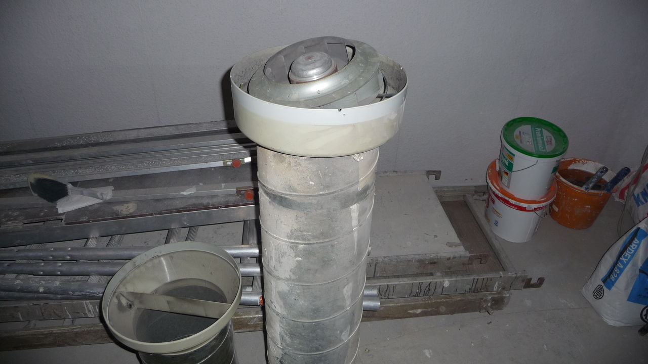 Das Loch, das die Abluftrohre zur Küche beinhaltete, wurde nun auch von der anderen Seite verschlossen.