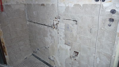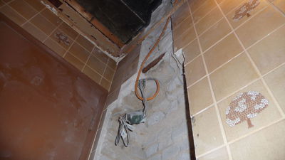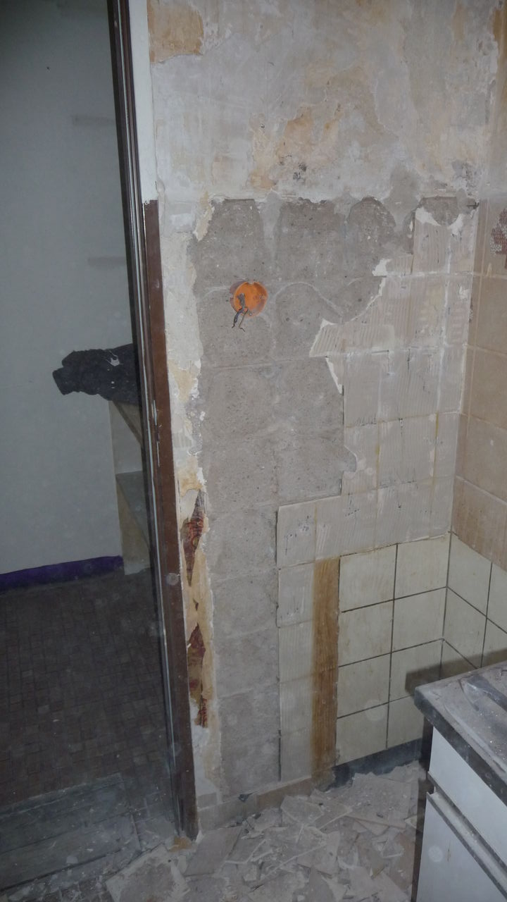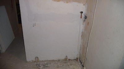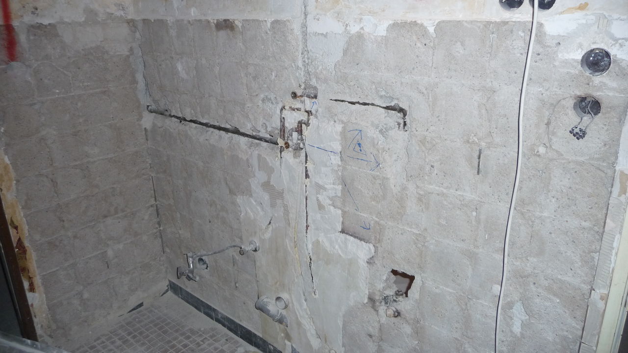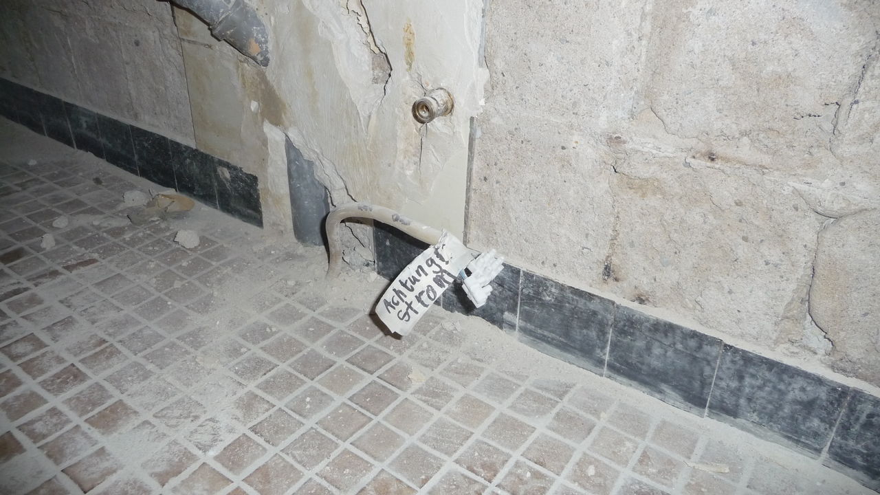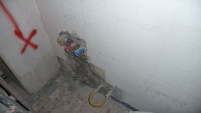 Letztes Wochenende wurden Handwerker mit der Demontage des alten Durchlauferhitzers beauftragt. Nach einem kleineren Zwischenfall wurde der immer noch stromführende Anschluss schließlich von uns gesichert. Zukünftiger Ort für das neue Gerät ist die gegenüberliegende Seite, an der sich auch schon ein Wasseranschluss befindet.
