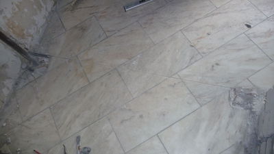 Die Bodenmasse ist im vorderen Bereich mittlerweile verhärtet. Hinten ist sie jedoch wieder abgebröckelt und muss ersetzt werden.