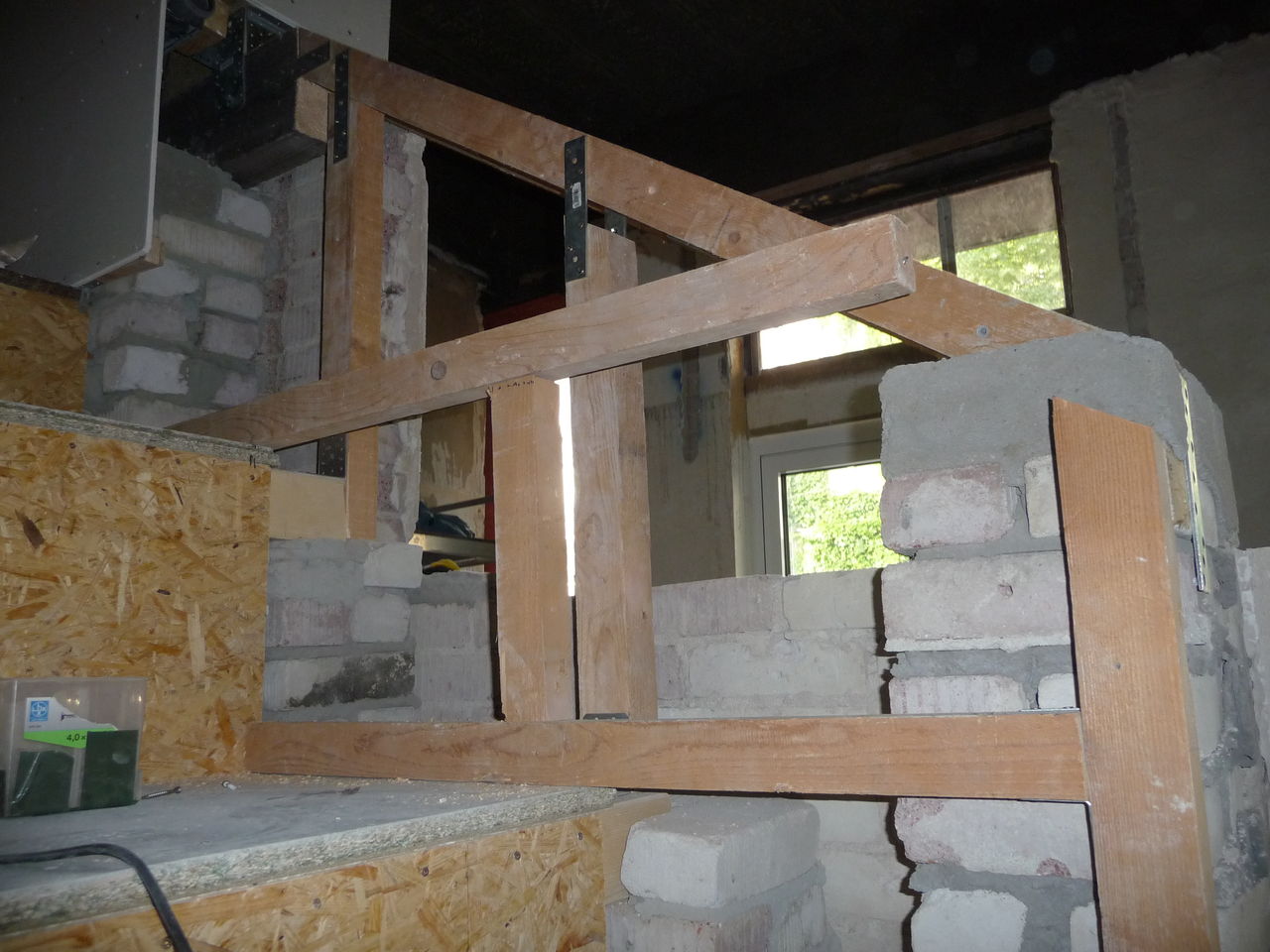 Die Verschalung auf der Treppeninnenseite ist so gut wie fertig, auch am Fenster geht es weiter.