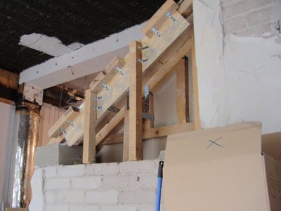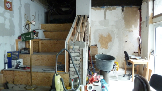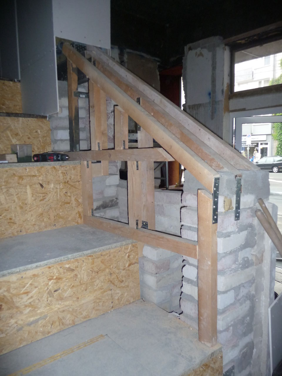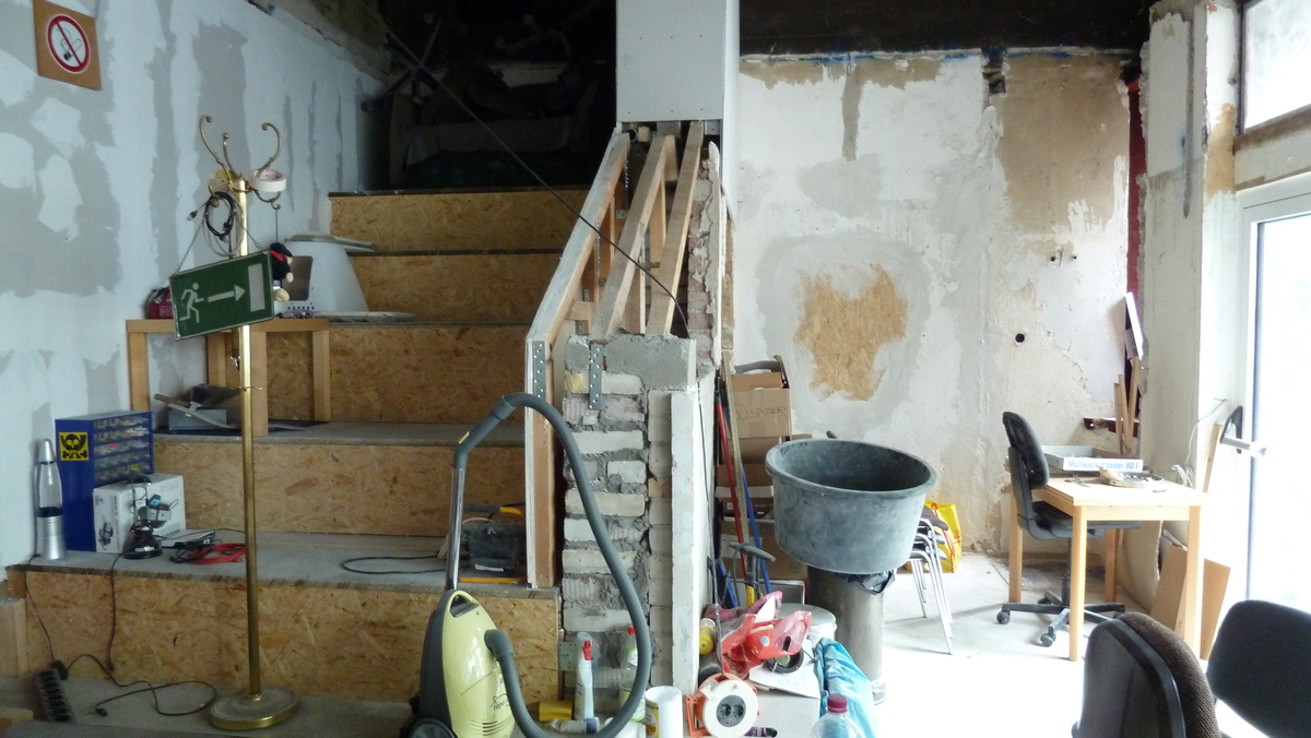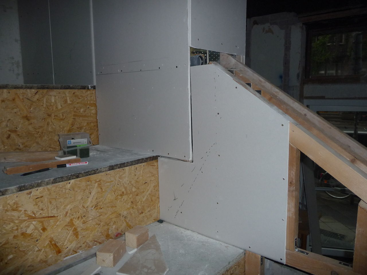 Außerdem wurden an der Außenseite der Treppe Vorbereitungen zur Aufnahme der Gipskartonplatte getroffen: