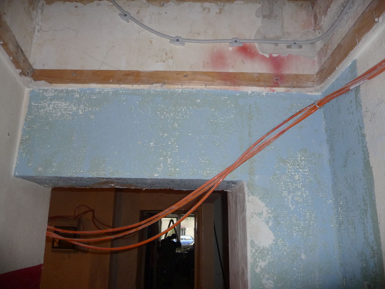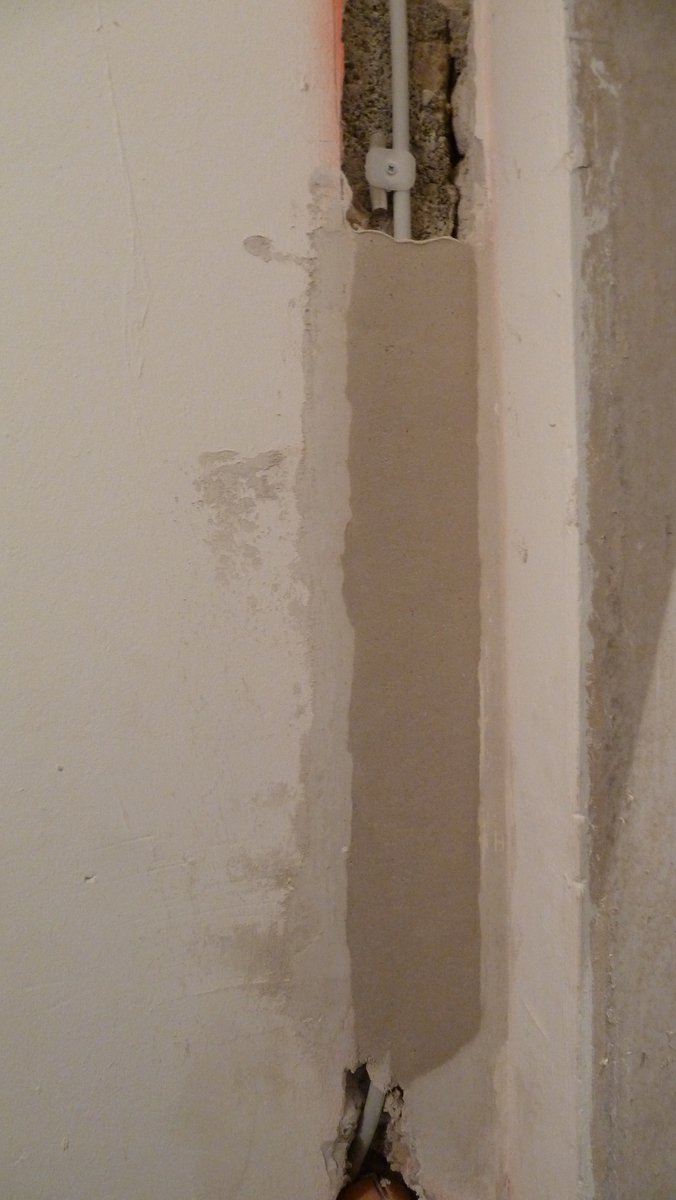 Wir stellen wieder einmal fest, dass Glasfasertapete so ziemlich das schlimmste ist, was man haben kann. Heute ging es der Wand mit dem Sicherungskasten an den Kragen, man sieht hier das Resultat von ca. 4 Stunden Arbeit...