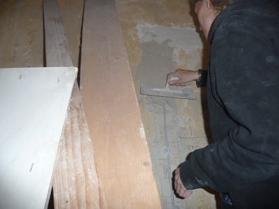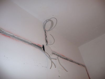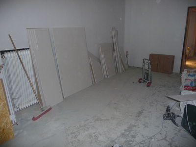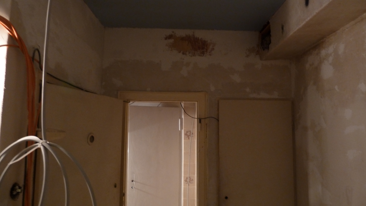 Die Verputzaktion im großen Lager wurde fortgesetzt, auch im Flur wird das erste Kabel stellenweise unsichtbar.
