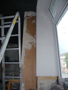 Die Gipskartonverkleidung am Fenster wurde weitergeführt.
