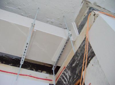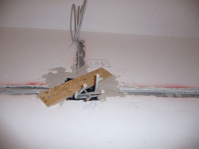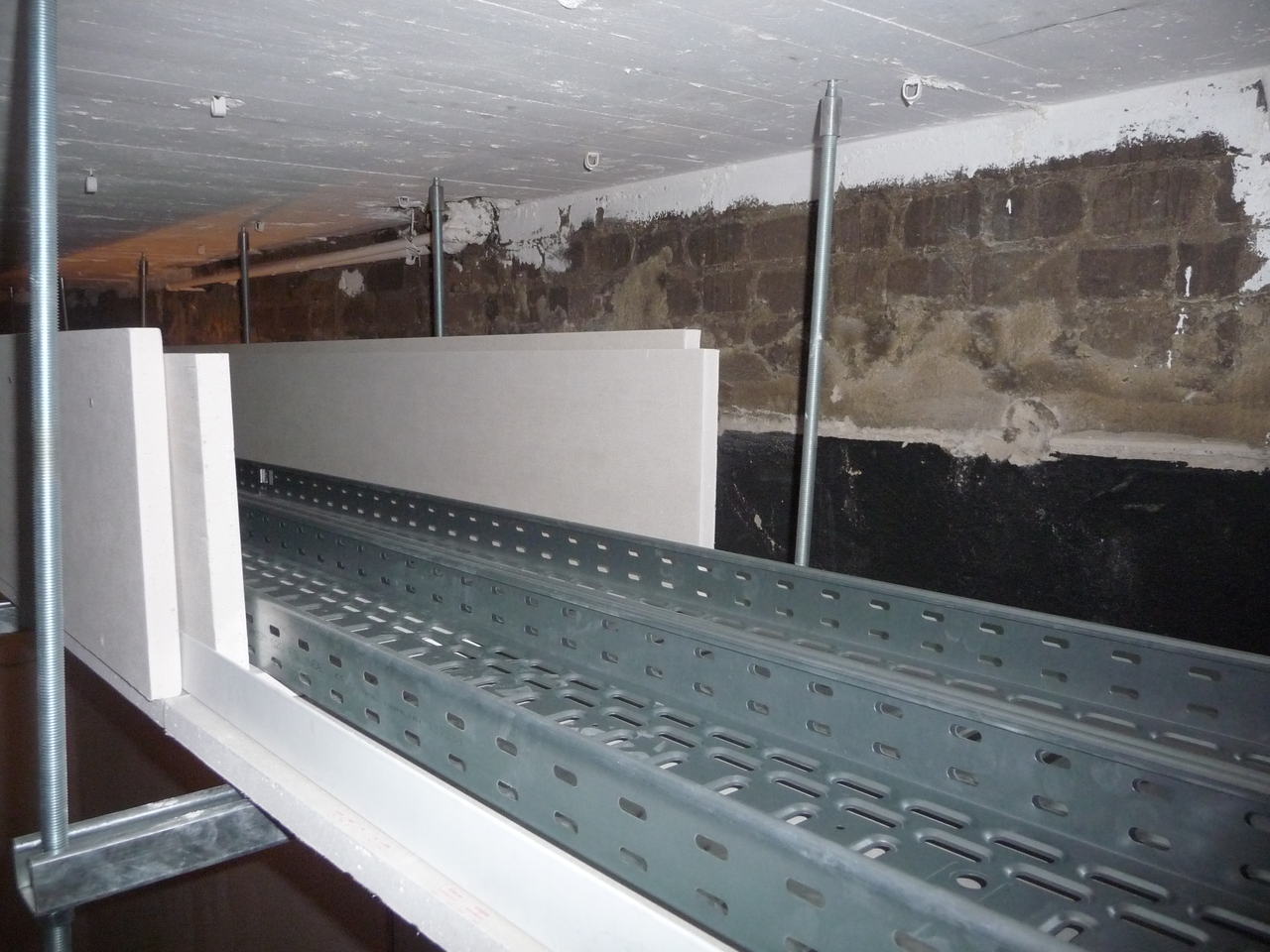 Auf einer Raumseite ist der Kabelkanal fast fertig, auf der Anderen baumeln schon die ersten Metallschienen.