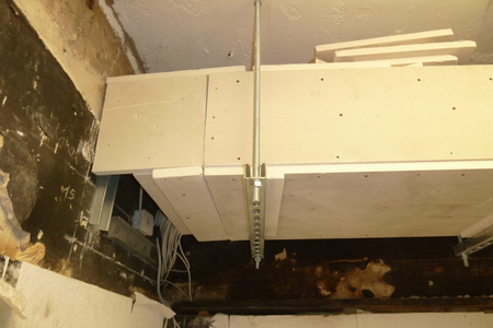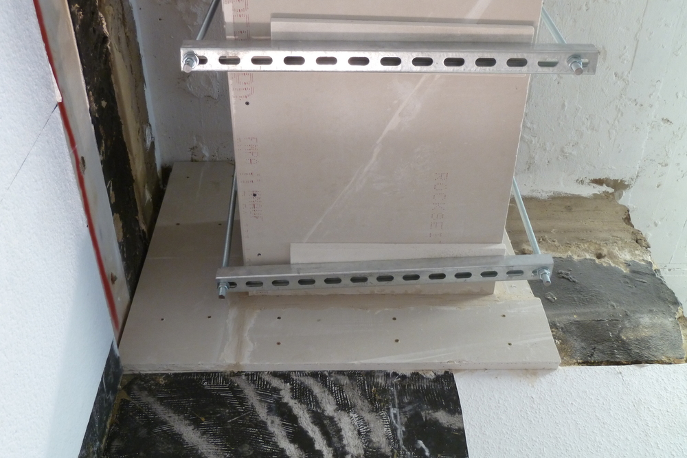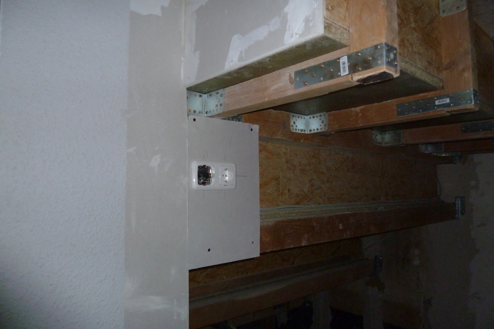 Die Verkastung über dem WC nimmt allmählich Formen an (nebenbei wurden noch zwei Holzelemente entfernt).