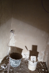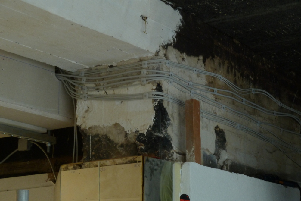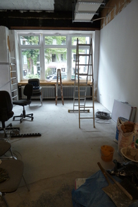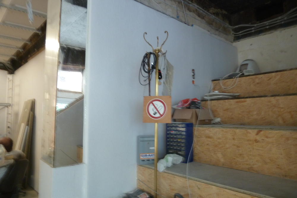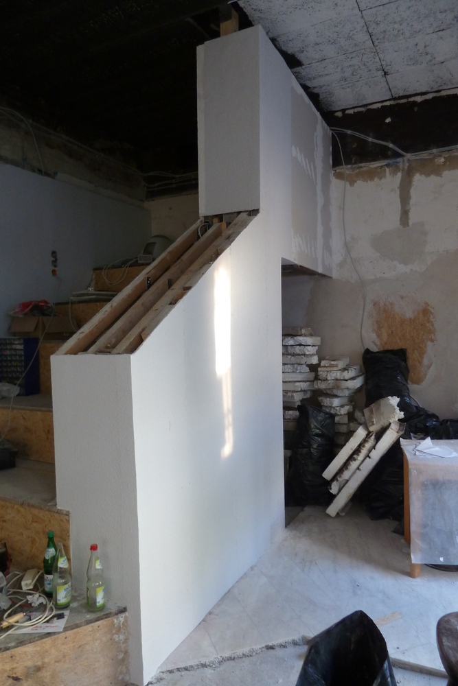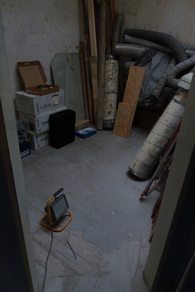 Im Serverraum wurde die alte Klimaanlage (Bild kommt vielleicht noch) entfernt sowie ein Großteil der Wände schonmal verputzt.