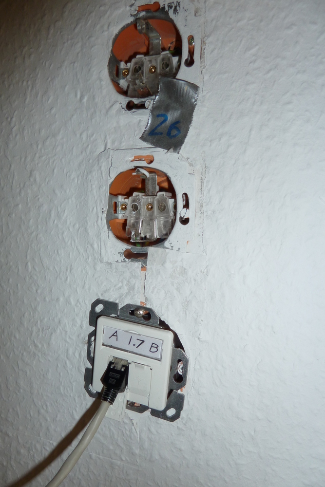 Im Hauptraum gibt's inzwischen richtige Netzwerkdosen und bald eine Fensterbank: