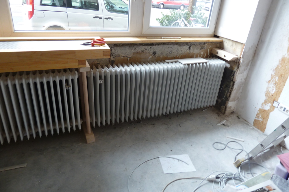 Der letzte Rest Tapete an der Wand am Fenster ist sogar schon da.