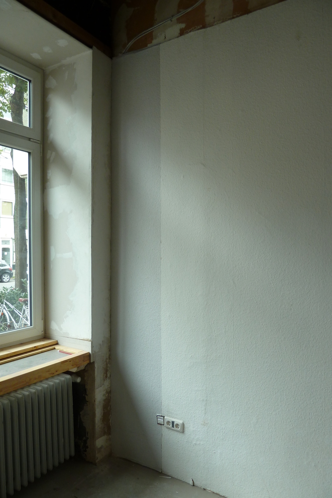 Im Türbereich wurde die Wand glattgespachtelt, davon gibt's leider keine Bilder.