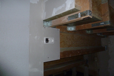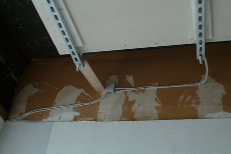 Am Kabelkanal hängen nun auch im vorderen Bereich Dosen für Strom/Licht.