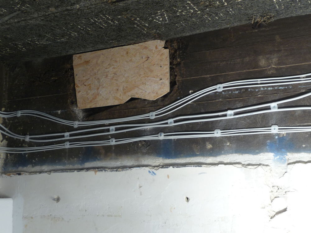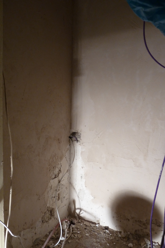 Ansonsten liefen natürlich die üblichen Elektroarbeiten: Kabel verlegen, bereits verlegte Kabel suchen und alte Kabel von den Vormietern finden, die an viel zu vielen Stellen aus dem Boden oder der Wand kommen.